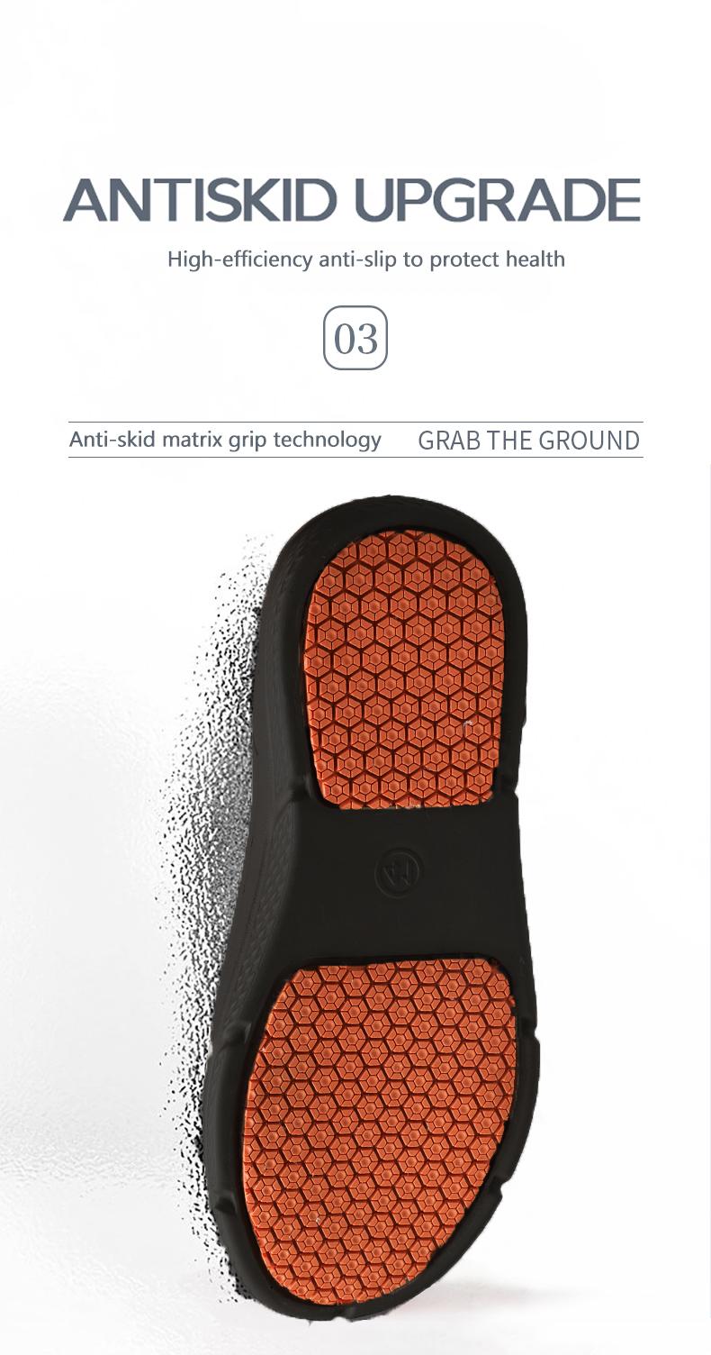 - **AntiSkid Matrix 2.0 Technology**: Diamond-patterned outsole grips 45° oil-coated slopes (lab-tested), doubling traction vs traditional designs.