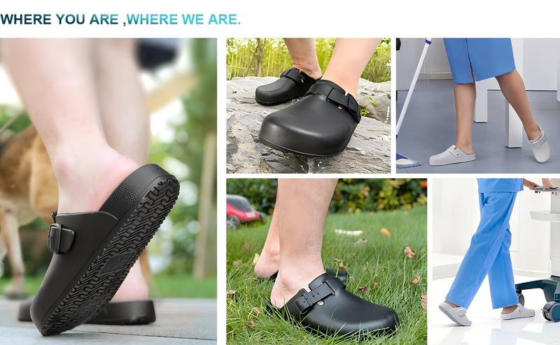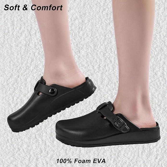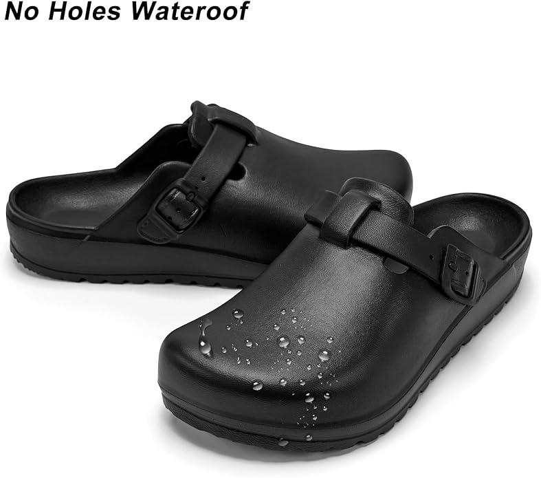 Waterproof non-slip work clogs arch support for chefs nurses labs gardens, lightweight and comfortable slip-on sandals, elastic foam shoes mules